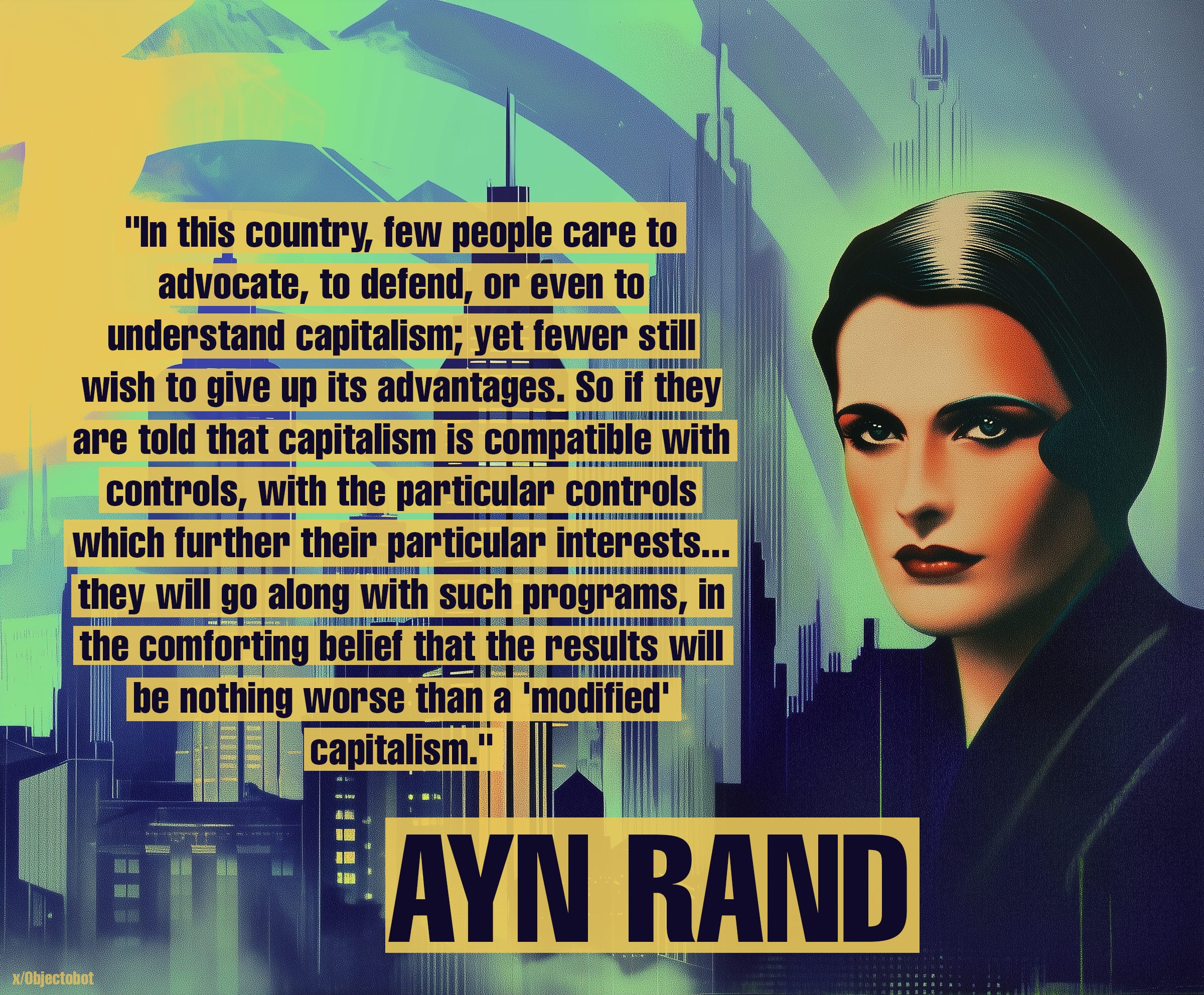 "In this country, few people care to advocate, to defend, or even to understand capitalism; yet fewer still wish to give up its advantages. So if they are told that capitalism is compatible with controls, with the particular controls which further their particular interests... they will go along with such programs, in the comforting belief that the results will be nothing worse than a 'modified' capitalism."